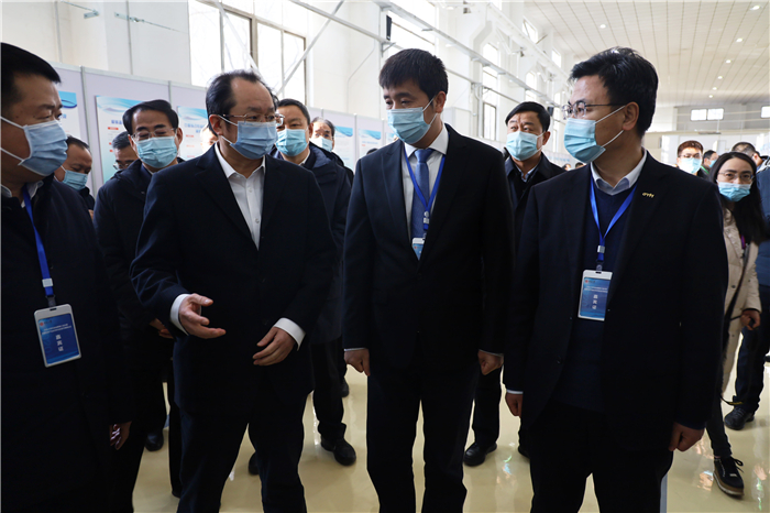 Before the meeting, Wang Yonghong, general manager of OMH, accompanied Wang Yixin, vice-governor and party secretary of North University of China Shen Xingquan, and other leaders to visit the exhibition of scientific and technological achievements of North University of China.