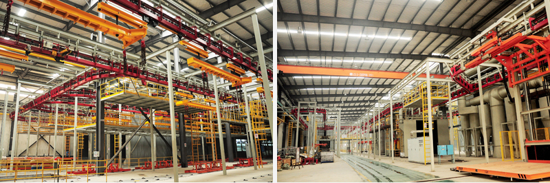 品目2設(shè)備用于前處理電泳前后、電泳烘干等過程的輸送及前處理電泳前工件上掛、轉(zhuǎn)掛及電泳烘干后工件的定位輸送;廂體上掛到下件全過程輸送;各類小型零部件底漆、面漆涂裝的過程輸送。