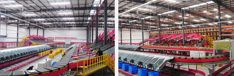 唯品會交叉帶智能分揀系統占地面積1000平米,分揀效率達每小時2萬件以上。由包裹輸送線、疊式皮帶分配系統、供包臺、交叉帶智能分揀主線、分揀格口、自動出倉系統等部分組成,是集機械、電氣、軟件為一體的先進分揀系統。交叉帶智能分揀系統占地面積小、分揀效率高、人工投入少,是大型生產倉配中心、電商公司、快遞公司等提升行業競爭力、減少人工成本、提高倉配效率的選擇。
